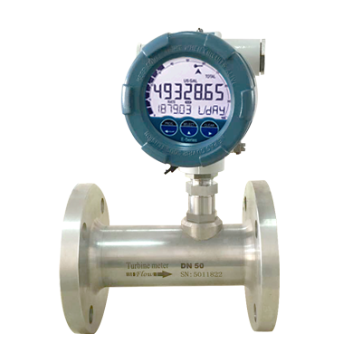 *Display shows flow rate, total, measuring units and a flow rate indicating speedometer;